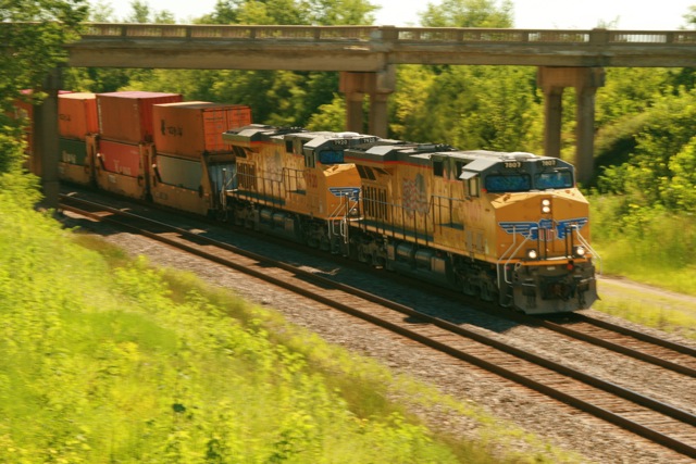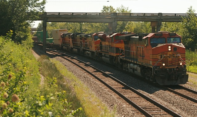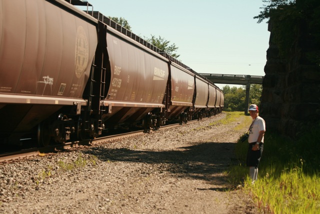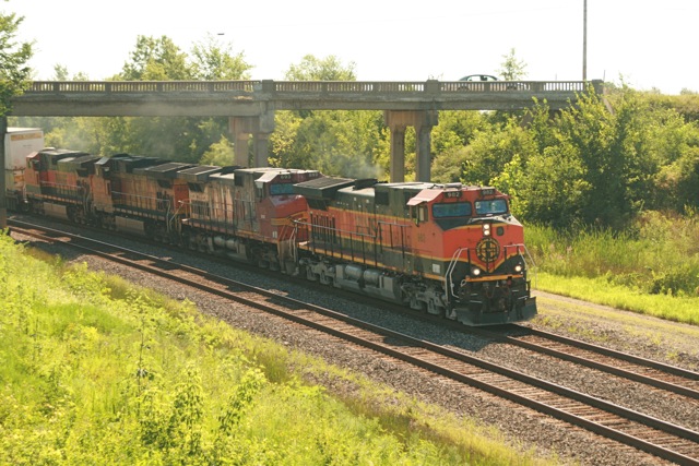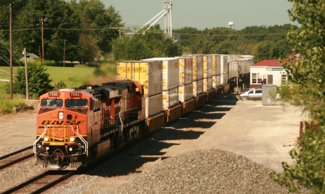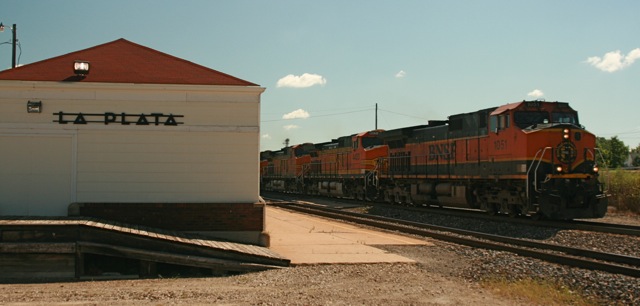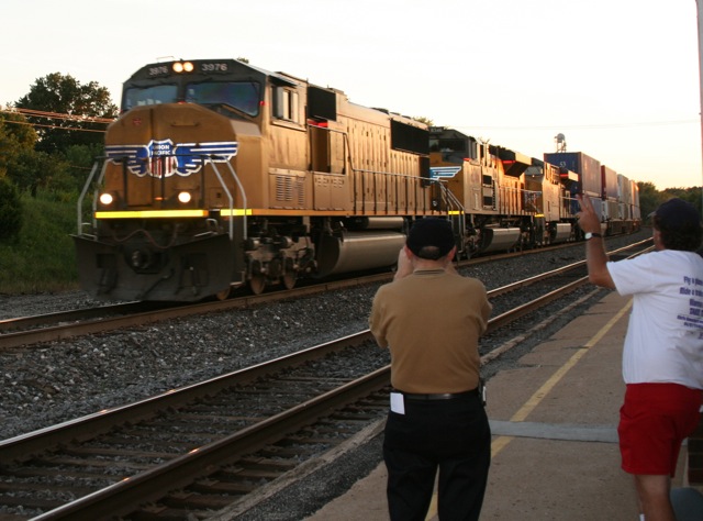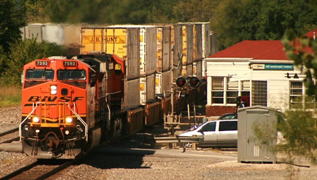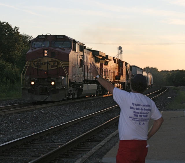waiting for Amtrak, some Santa Fe Freights Fly By.