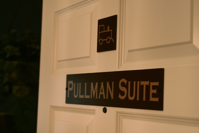 (Right) All the hallways in the Depto Inn are lined on both sides with RR memoribilia. |