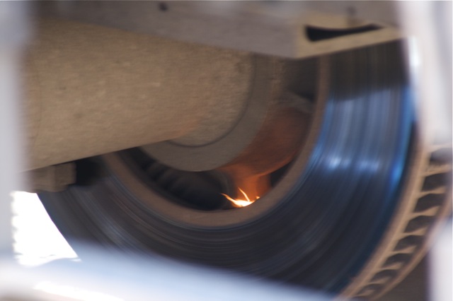 attendant got the fire extinguisher out, prepared to douse the flames,