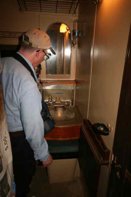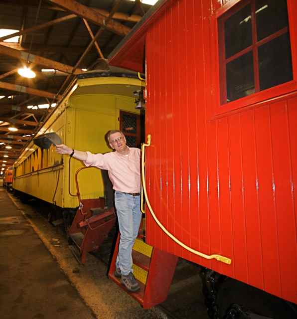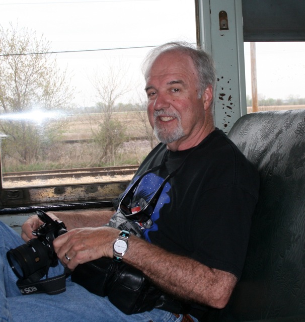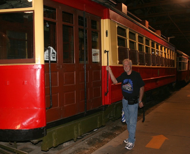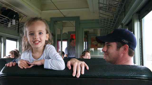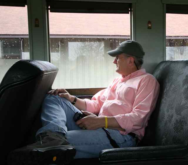 ![]() Bob watches the scenery through a sprinkle. On our Streetcar ride (right). |