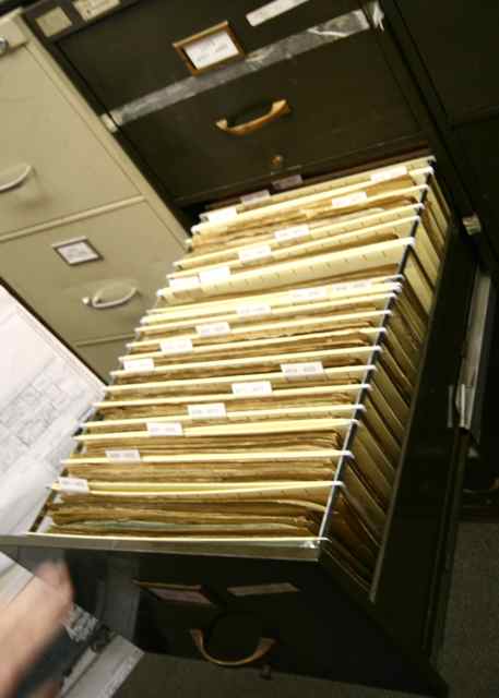 drawer full of original drawings, about 5 ft. long by 2 to 3 feet tall.