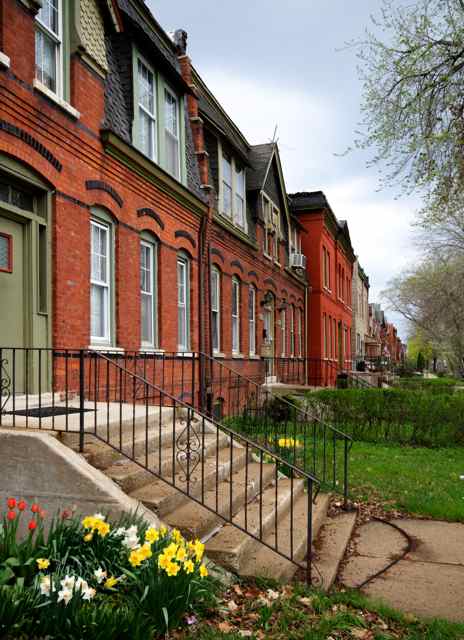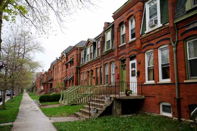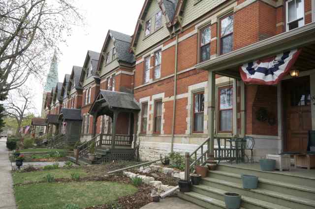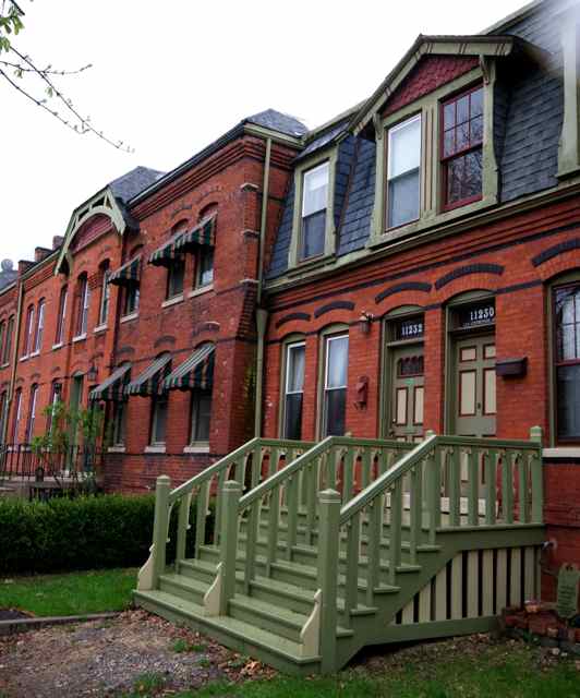 "Honeymoon row" very small studio or one-bedroom inexpensive flats.
