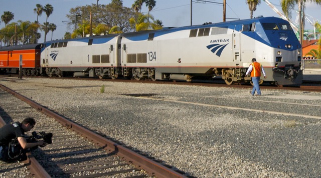 the Southern California, also have an Amtrak locomotive tucked in