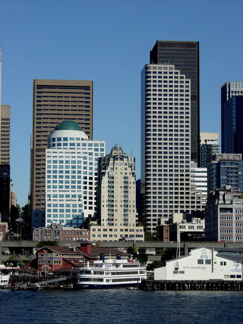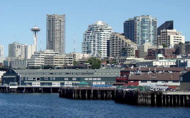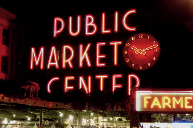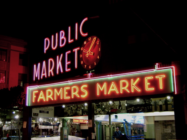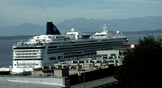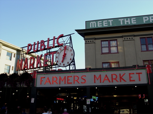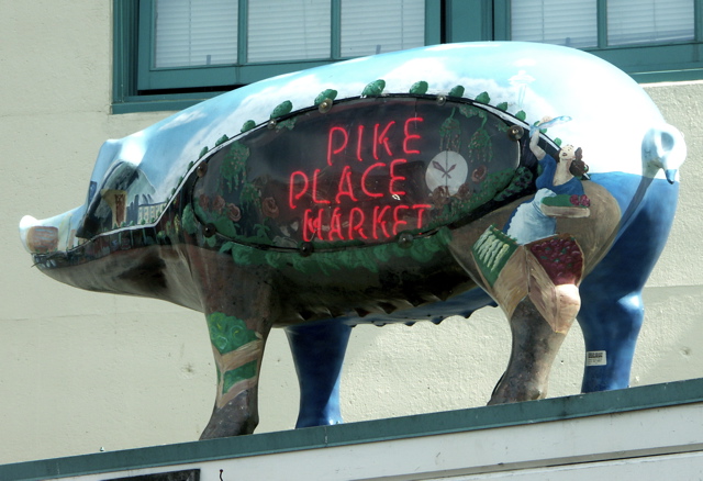 door of Pike Market, you can see Puget Sound and any cruise ships that