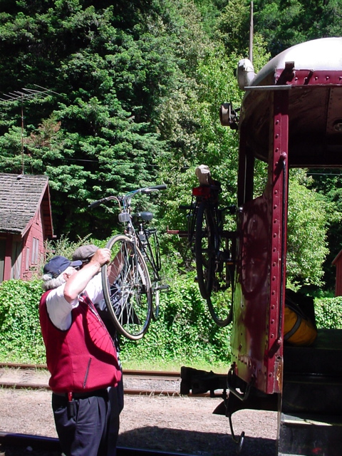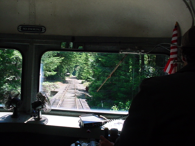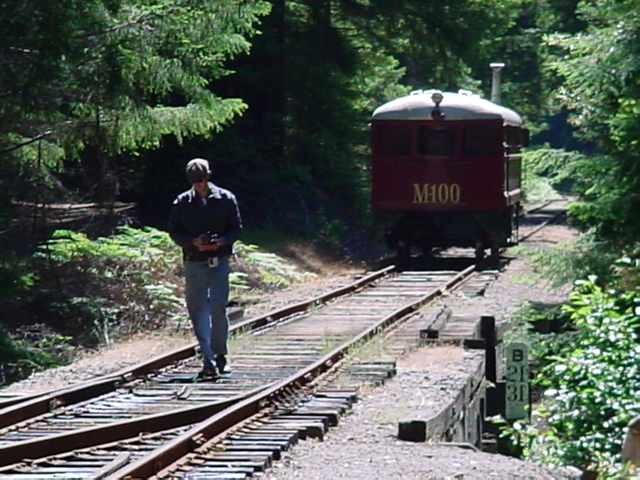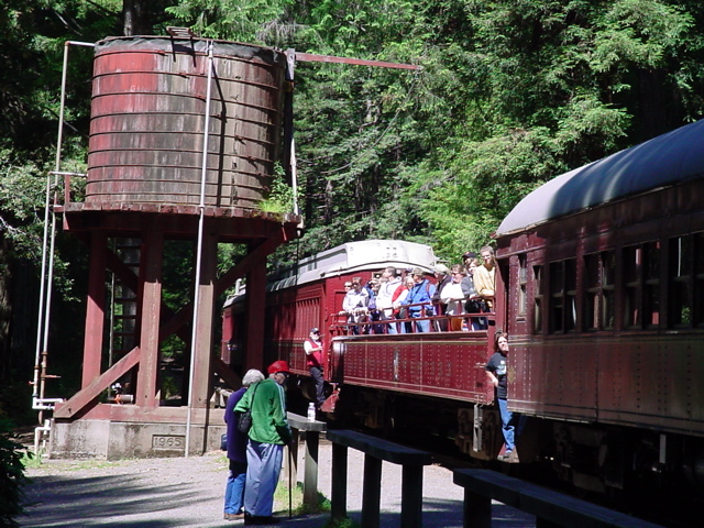 Bragg riding the Skunk Trains from Fort Bragg, up the mountain to