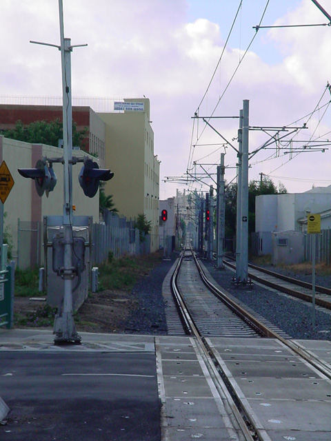 Since this is still a freight line (2 or 3 freights a week, at night) there had to be complete separation of light rail passenger from freight. The FRA gave the shared use waiver after additional items were added, such as anti-climber devices, braking rate changes, crash posts to match electric vehicles. The regulator is PUC.