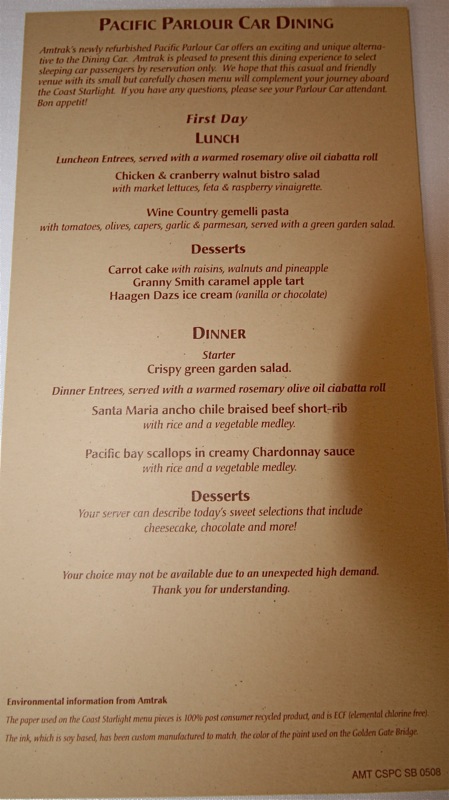 that if you book a sleeper on the Coast Starlight, northbound from any