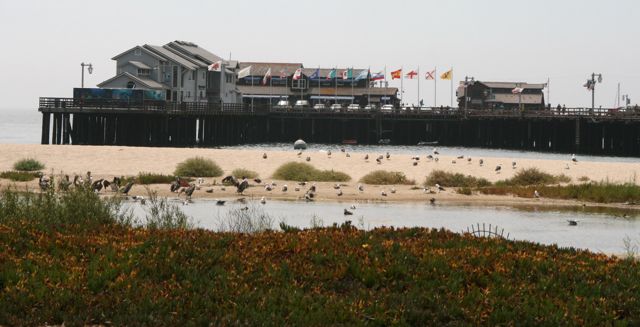 ![]() Stearn's Pier from E. Cabrillo Street along the beach. Right, Porpoise