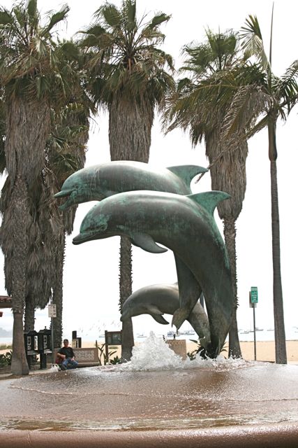 fountain at the beginning of Stearns Wharf.