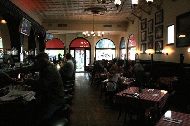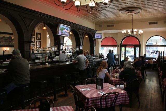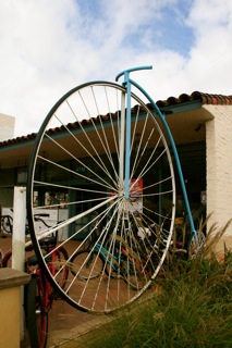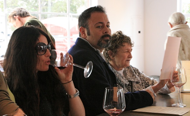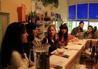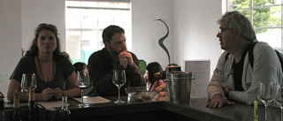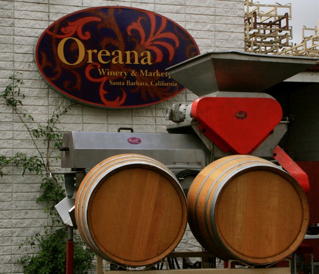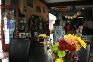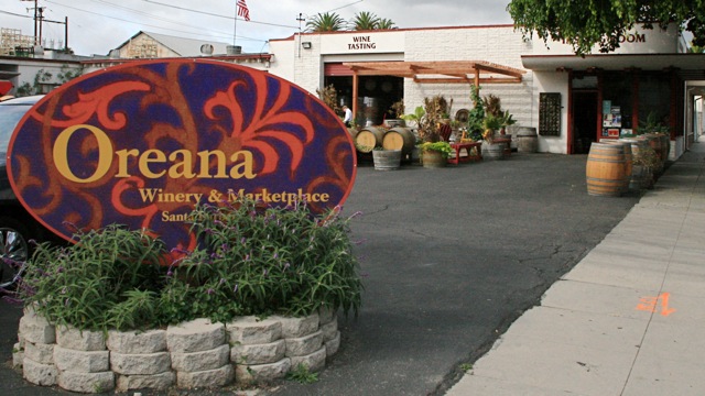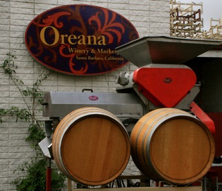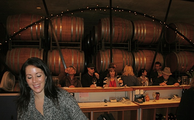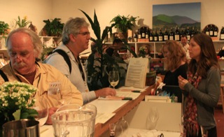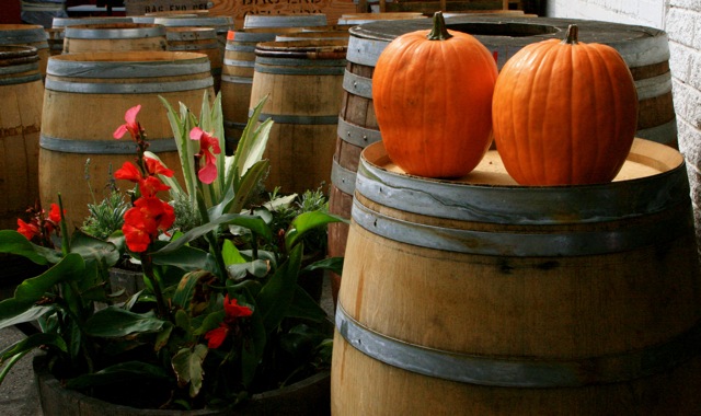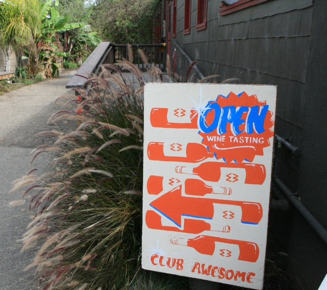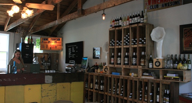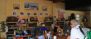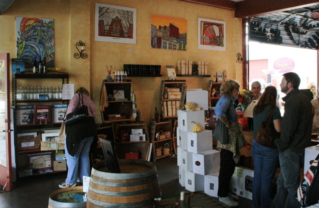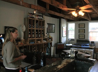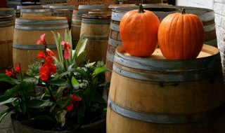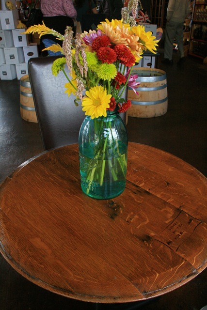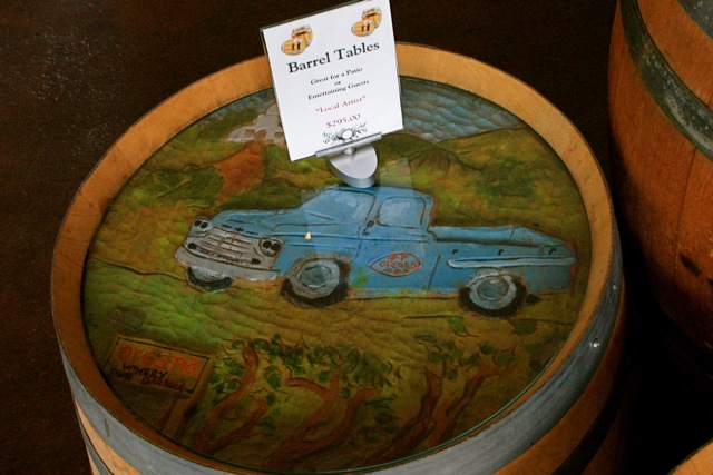 Wine barrel heads were used througthout their 'marketplace' some as tables for customers and others for sale (above). |