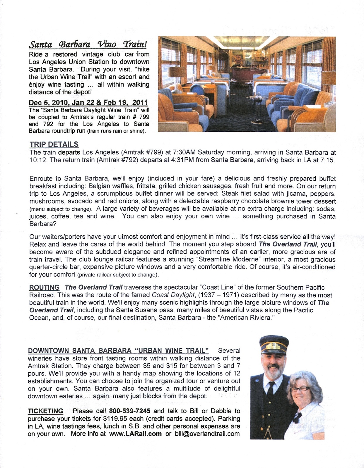 Don't miss out on this opportunity to take a great, economical, excursion to a beautiful Mediterranean-like Southern California city, or other trips outside of California,