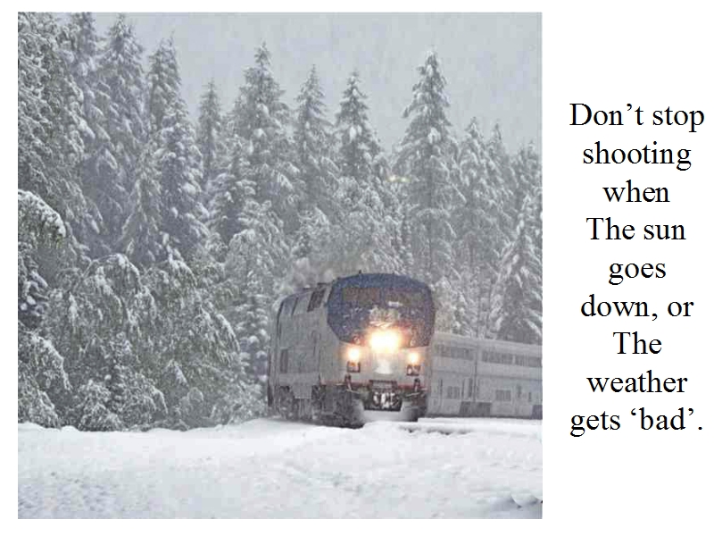 Don’t stop shooting when The sun goes down, or The weather gets ‘bad’.