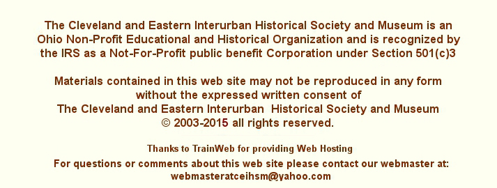We are a non-profit group dedicated to the preservation of artifacts and materials relating to Northeast Ohio's interurban railways. Our goal is to educate the public about this fascinating part of Ohio's transportation history.