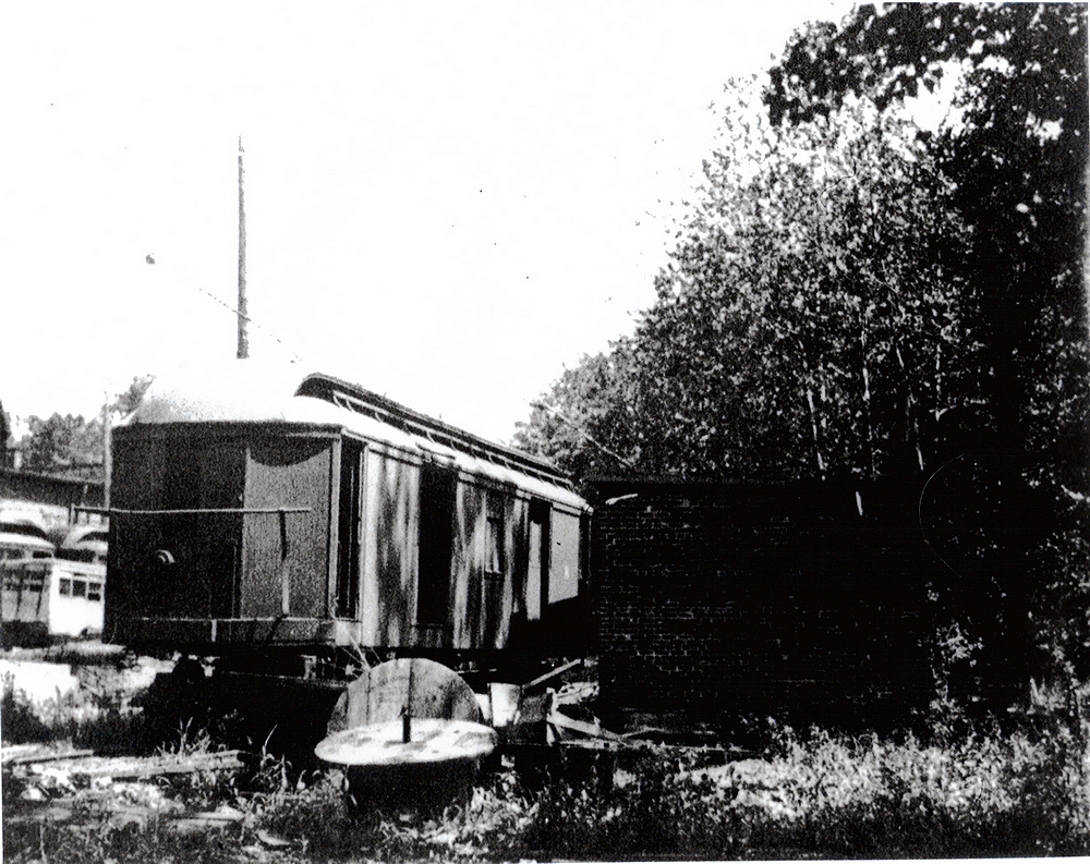 C & E Freight Motor #40 is pictured here at the line's Gates Mills shops. We can tell that the end is near, to the left of the photo the line's lone bus can be seen in the background.