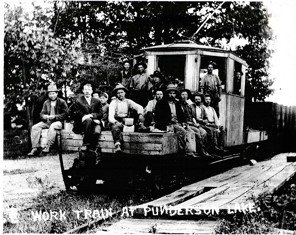 C & E Work Locomotive #46 and a track repair crew pose for this photograph at Punderson Lake. The gondola car in the background was probably built from one of the line's several flat cars.