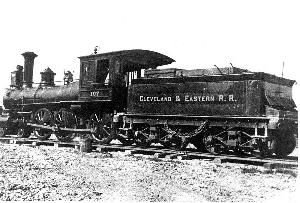 The C & E purchased steam locomotive #107 for use in the construction of the line. It was built in 1892 by the Baldwin Locomotive Company for the New York, Chicago & St. Louis Railroad. The steam railroad sold it to the C & E when they retired it from service. |