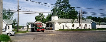 The car shed has been torn down and the station has been moved to the south side of the driveway (formerly the roadbed) and rotated 90 degrees. The truck in the bottom photo sits about where Car #23 is in the middle photo. The building now houses the Fairgrounds' Offices.