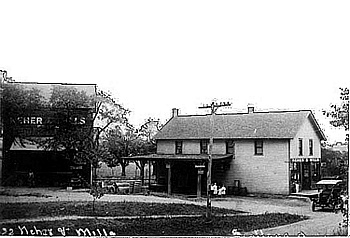 In the top photo we see passengers waiting at the Scotland Station as C & E Car #53 approaches. The station was located behind the Neher & Mills Store on Mayfield Road, seen from the front in the second photo. The store supplied dry goods to the bustling communities of Scotland and nearby Chesterland for many years. After the C & E abandonment in 1925, a neighbor moved the station building across Mayfield Road to his back yard. Ironically, the structure was used as a garage for the owner's automobile.