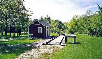 The station has been restored and now sits along the original roadbed, as seen in the bottom photo. The Neher and Mills Store is being restored to its original configuration and is located now on the far side of the station. Visit our 'Other Fun Stuff' page for a link to the Foundation's Web Site to learn more about the Organization and its' efforts to preserve historical structures from the Chester Township area.