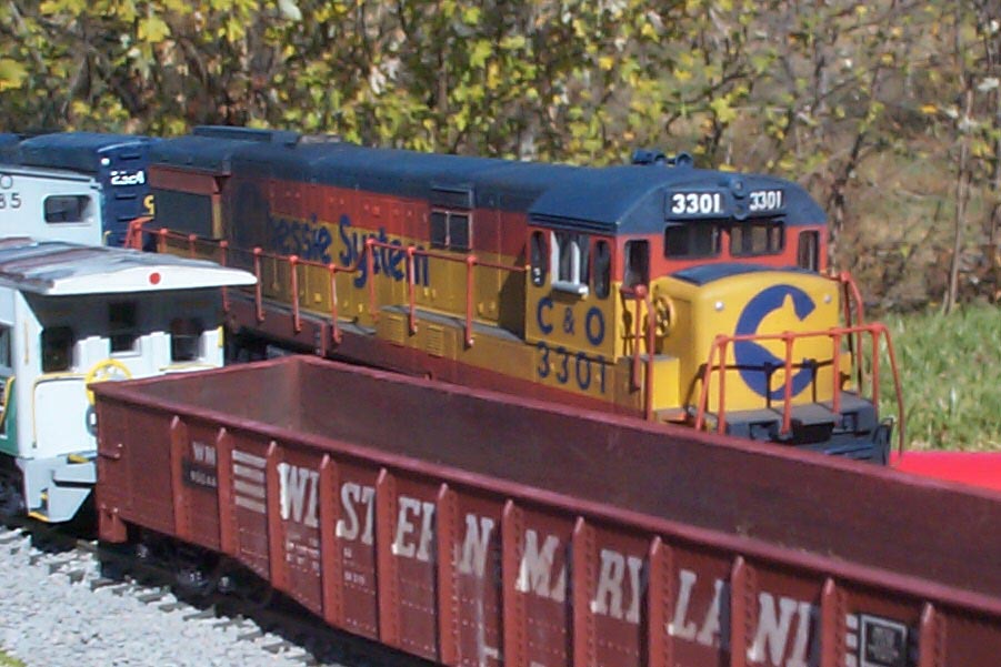 Here #3301, a rare U30C passes behind a short maintenance of way train.