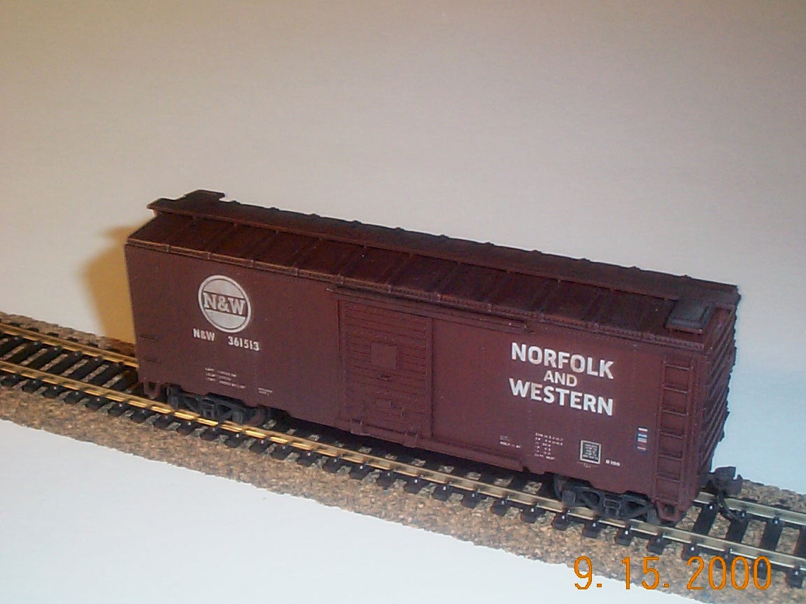 Norfolk and Western 40 ft Boxcar: The Norfolk and Western had an interchange with the Chessie System. Although they were direct competitors they did interchange cars. This is a typical N&W 40' Boxcar.