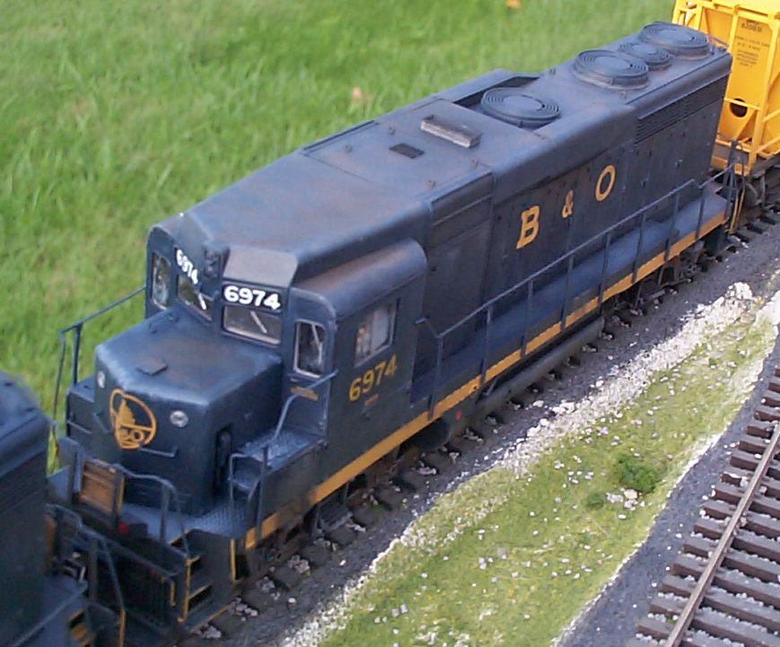 taken into the sun. 6974 sits on the siding as a mixed freight over