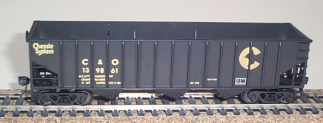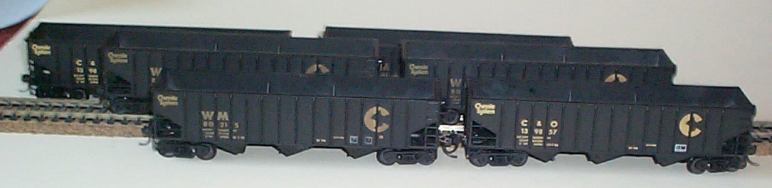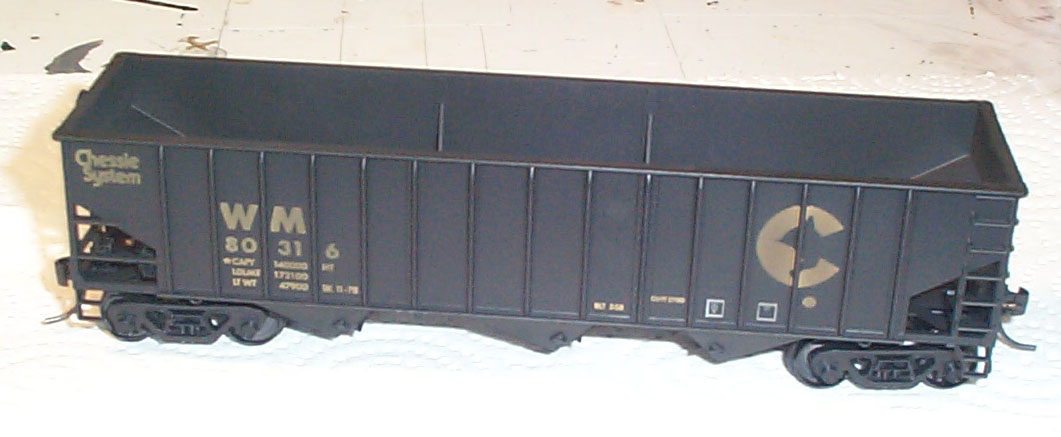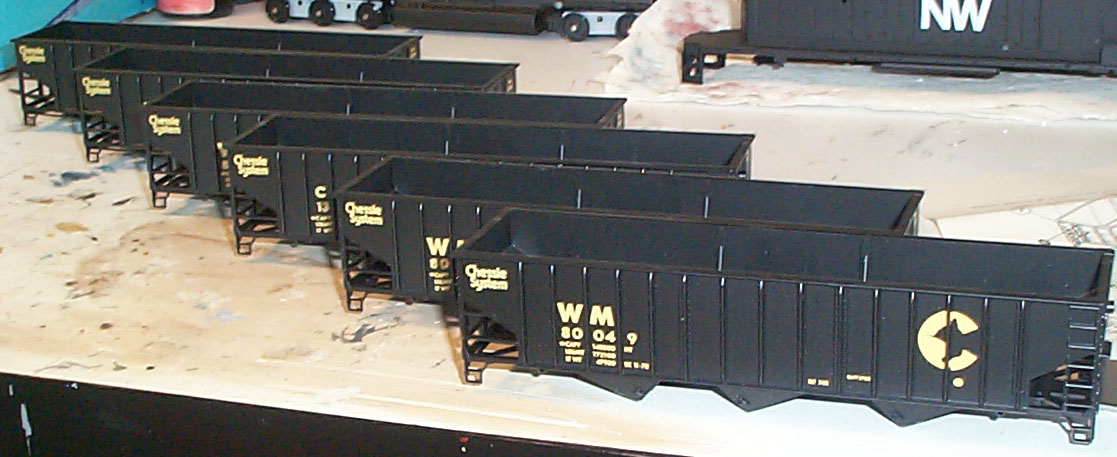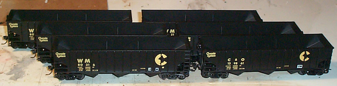 Stewart offers a 6 pack of these cars. 4 come with Western Maryland lettering and 2 with C&O lettering. As on the real cars, the lettering of the two roads is slightly different. Stewart also sells the cars individually. Each WM or C&O car comes in atleast 12 different road numbers.