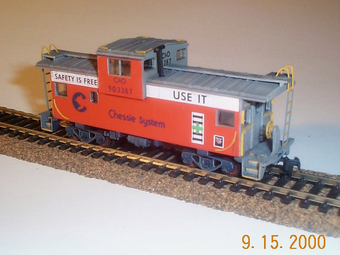 I painted the ends of the cupola and caboose grey. Chessie painted