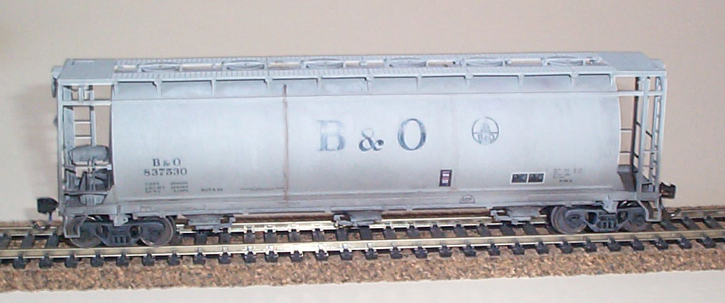 I would highly recommend you get some of these. This kit comes ready to run and is prototypically correct. The lettering is almost perfect. Mine are numbered #835031 which puts it in the #835000-835154 HC-13 class, and #837530 which puts it in the #837530-837554 HC-20 class. If you get an undecorated one, the road number needs to fall into either of those ranges to be prototypically correct for the B&O.