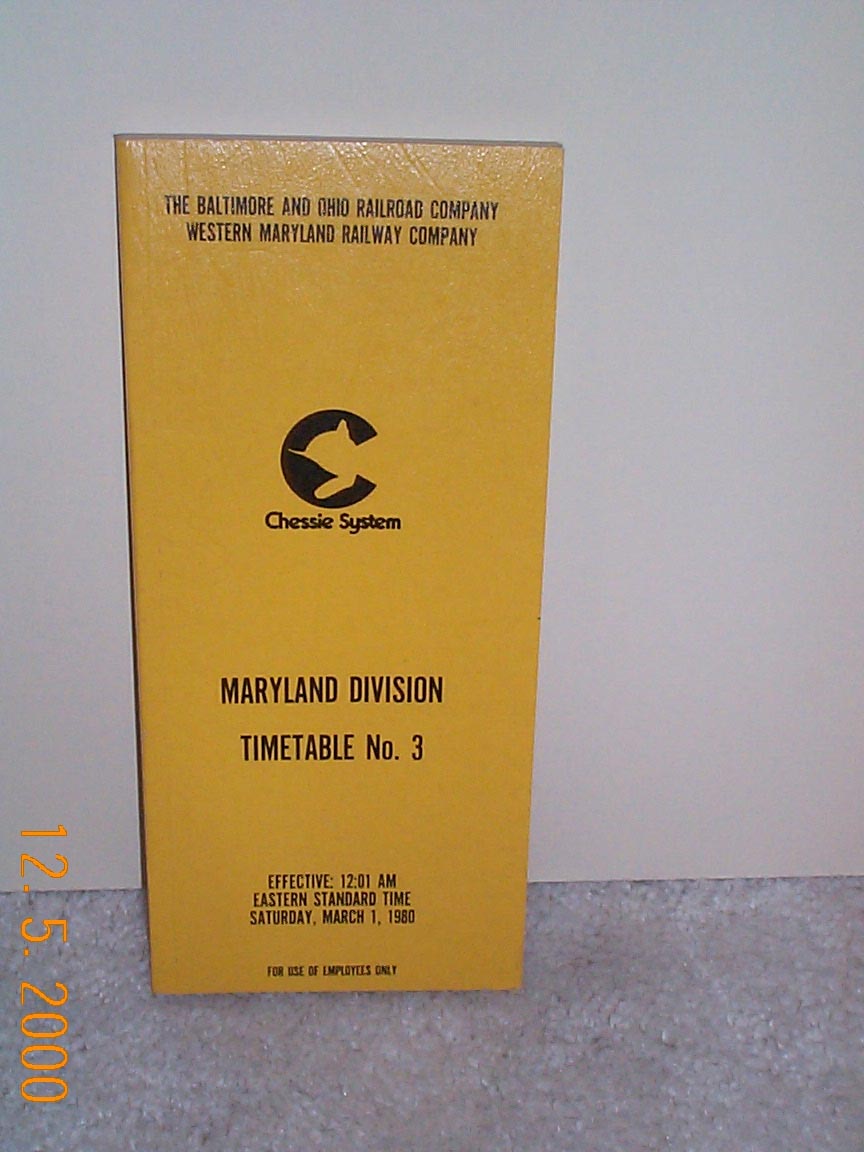 Timetable No. 3 Maryland Division, Effective: 12:01am