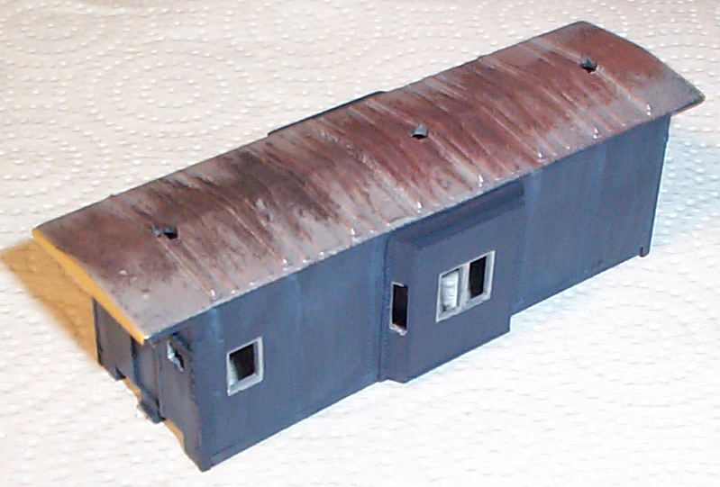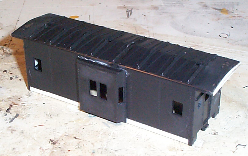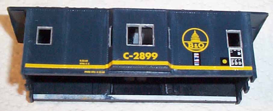 The real cabooses were originally build with two windows on each side. Before the Chessie era the B&O sent all I-17 and I-17As through a rebuilding program. The net results were all Chessie C-22 and C-23s had one window on one side removed (see photo below). Doing this project as I have will produce a caboose with only one window on one side, but it is unfortunately the wrong window. The Athearn kit will produce a car with the blanked window on the right of the cupola not the left, as on the prototype. It is a small difference I can live with.