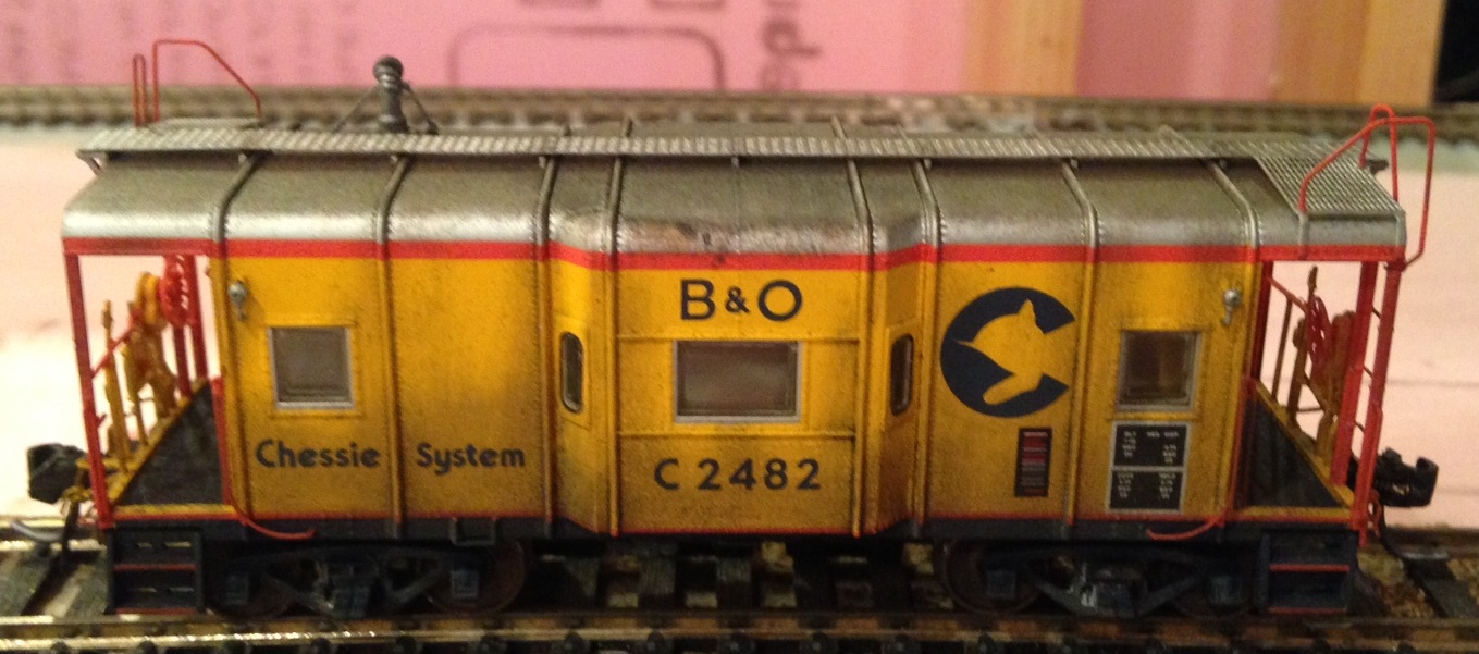 Spring Mills Depot Wagontop Caboose C-2482. This is my second C-18 class caboose. This kit comes ready to run with metal wheels and Kaydee couplers. It is absolutely 100% correct for this unique type of caboose, found only on the B&O. It is a must have for any Chessie era model railroad. All I did is weather it with chalks, making sure to put liquid mask over the windows, so the Dull Coat sealer won't ruin the clear styrene. The only draw back is that the model costs over $50 a piece.
