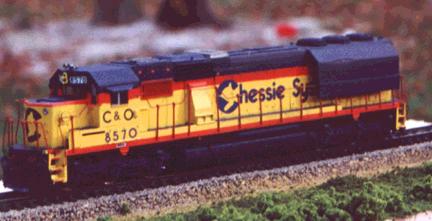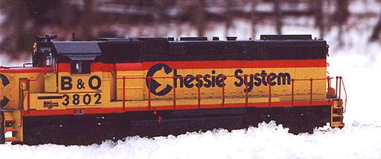with a C&O slug. The GP39 is an Athearn GP38-2 that has been