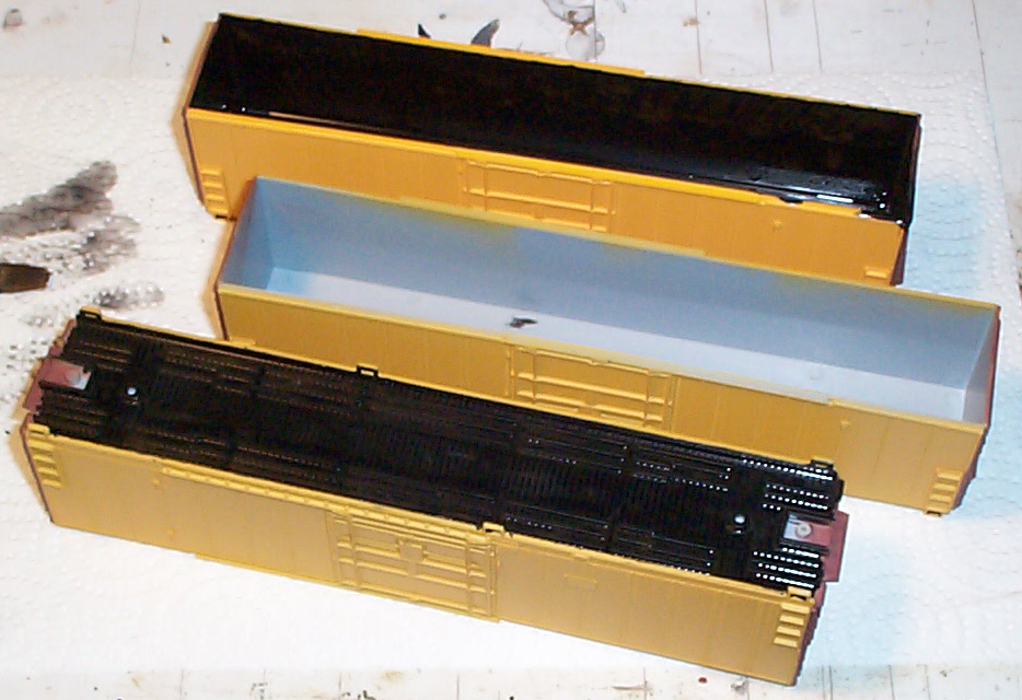did not paint that one black inside. The bottom car is upside down