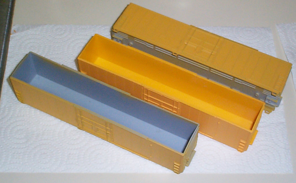Below are the roofs, rused up and ready to go on the cars.