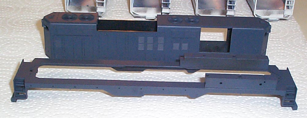 This kit is different than most in that the shell comes with separate pieces for the cab and side sills. In Athearn kits just the cab is separate.