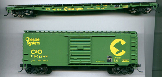 and a Walthers C&O Autorack. Greg painted and decaled them