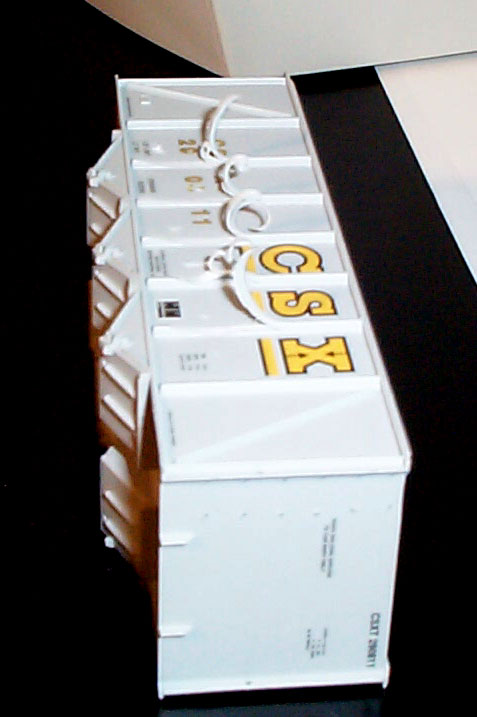 Walthers offers the car in Chessie and CSX paint. I got mine as a Christmas gift in CSX paint, so I undertook to correct the cars problem since repainting was already neccessary. I run a purely Chessie layout, so CSX cars get backdated to Chessie paint when I get one as a gift.
