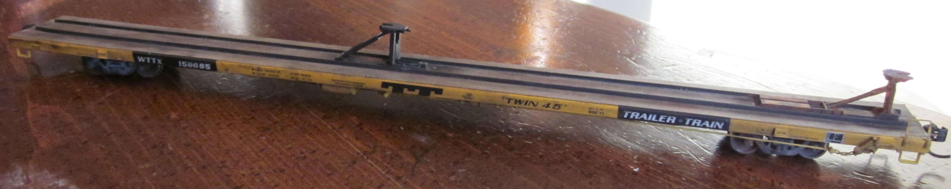 I have done only a few of the TOFC cars. The actual flat cars were actually owned by TTX and not Chessie, so technically the cars are not Chessie models. Generally speaking Trailer Train had two paint schemes during the Chessie era. The boxcar red cars were the older cars and were painted in the 60's. The more familiar yellow Trailer Train scheme (seen with the Chessie trailers below) started around 1970. A normal Chessie TOFC train (or Trailer Jet as the B&O called them) would have about 80% yellow and 20% boxcar red cars. The red cars tended to be the 85 foot cars for carrying two 40 foot trailers and the longer 89 foot cars tended to be yellow (for two 45 foot trailers).
