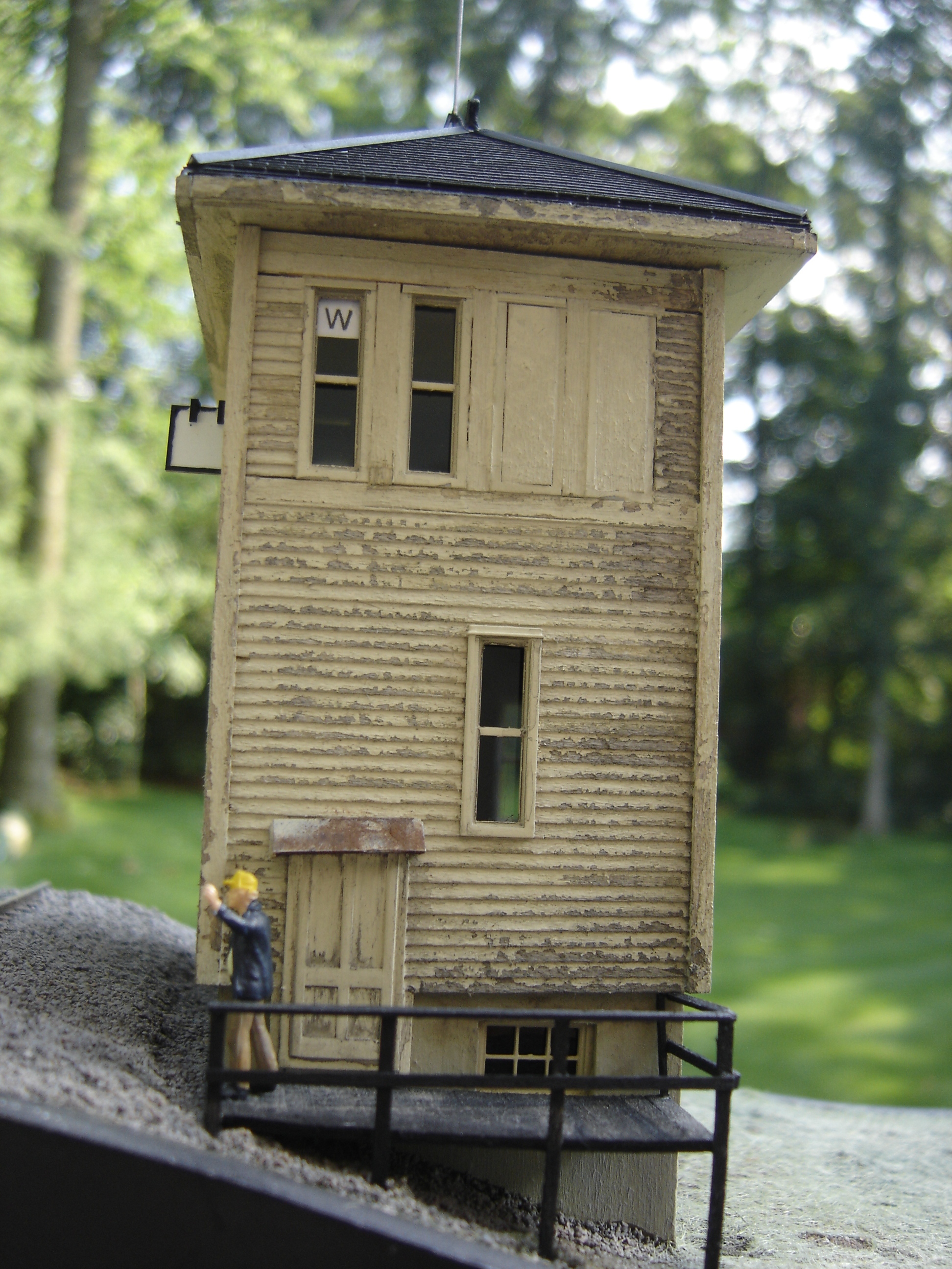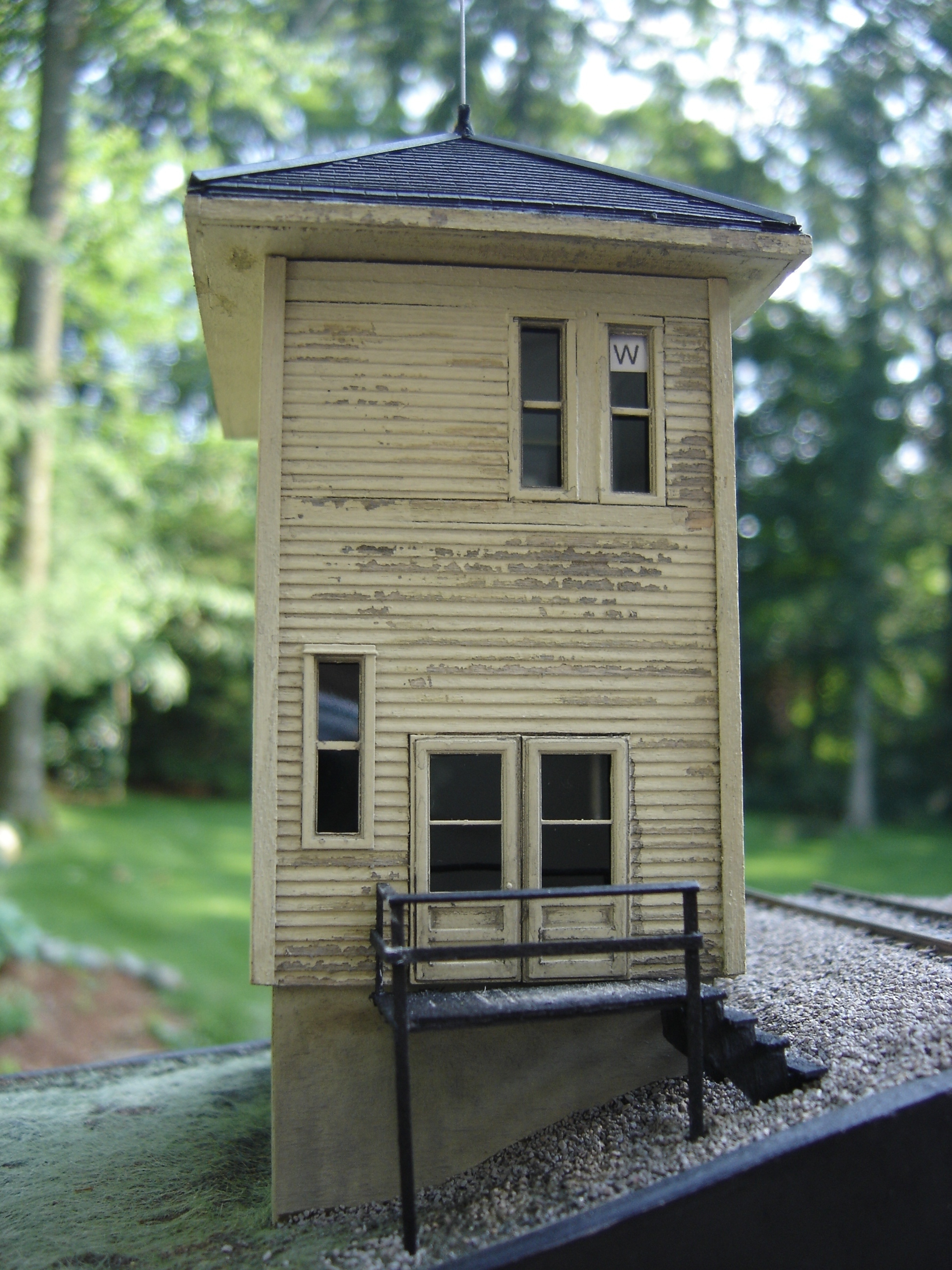 Built in 1912 to replace a previously burned down W tower, this W tower stood in Hedgesville, WV from 1912-2000.  This was my first scratchbuilt structure.  It is made of Northeast Scale Lumber wood siding and trim.