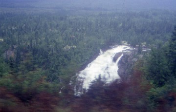 The rain had stopped for now as the train returned to Labrador and I photographed the water being released from the Menihek Dam then relaxed and listened to music down to Ross Bay Junction. At Eskers, a group of five adult falcons were holding a meeting in a large nest atop a trackside pole and Lake Menihek appeared to be about 110 miles long, stretching from the dam at Menihek to almost Ross Bay Junction.