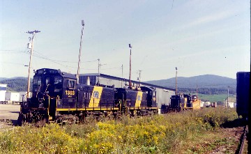 Downstairs, our female guides, Stephanie Hardy and Mary Rachelle Cherpak, were singing Nova Scotian folk songs extremely well and their music really put one in the mood for the trip. The train reached Lorre siding with a marsh to the north and shortly after, we were at the peak of the grade at Milepost 31.3 then we passed through Westville before reaching Stellarton, where two passengers boarded who were members of our engineer's family. I saw a Cape Breton and Central Nova Scotia local freight working their lines in the area before we passed the Museum of Industry where Dominion Coal 2-6-0 42 was on display then crossed the East River and entered New Glasgow, with a large smokestack at the Trenton Car Works plant off to the north. This plant builds railroad cars for most major North American railroads.
