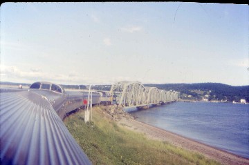 Our eastward journey continued as I listened to music to drown out two women who had not stopped talking, except to sleep, since they left Montreal. I pitied the two Japanese students who kept on being wakened by their loud outbursts. The Ocean's next stop was Sackville, which sounded like a town on a board game then we crossed the Missaguash River and entered Nova Scotia before our next stop at Amhearst. We did not stop at Springhill Junction but crossed over the ridge as I was doing word fill-in puzzles until just before Truro, where we met the westbound Ocean. At Truro, a carload of school children boarded, many of them making their second train ride of their lives after first coming from Halifax this morning. All too soon, the Ocean was curving along the Bedford Basin and we arrived in Halifax just fifteen minutes late.