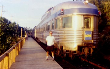 8/28/2000 I awoke at Matapedia as they were splitting the Gaspé train off and my memory took me back to that most beautiful trip that I had there last summer. I then went to the rear section of the Skyline Car to wait for breakfast to be served and had my entire meal of pancakes as the train was being serviced in Campbellton, New Brunswick. As the Ocean travelled east across the province, I was in kick-back mode and wondered how Sam and Bill's caribou hunting north of Schefferville went. When I boarded the QNSL train there, I had met some hunters from South Carolina, one who had bagged six caribou. So Sam and Bill, I hope you both had good luck and wish you a safe trip on your long drive home.