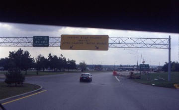 We left Montreal and made our way across the St. Lawrence River towards the American bborder. US Customs were not set up to handle the five buses as well as the other regular bus traffic. We were sixth in line and waited twenty-five minutes before moving up to be next in line, followed by another ten minutes before our turn. We had to take off any hand-carried luggage, place it on a table and I led the way inside the building to the Customs officials. I was asked just three questions before being sent to another counter to turn in my declaration form then I was sent to a waiting area until the bus was checked and we were allowed to reboard. Everyone returned except for one who had to come out, get his bag and was never seen again. An hour and twenty minutes later, we were told to go on without him.