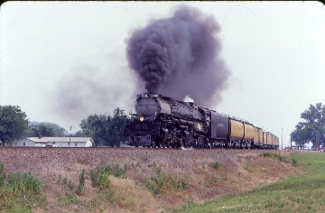 The above paragraphs taken from the NRHS 2001 Annual Convention Excursion Guide.I arose early and walked the two blocks to the Gateway Arch for my first close look at it. Returning to the hotel, I was on the first bus to the steam train which was waiting at Ewing Avenue. The consist was Union Pacific Challenger 4-6-6-4 3985, water car 809 "Jim Adams", water car 814 "Joe Jordan", tool car "Art Lockman", tool car "Howard Fogg", box car, commissary car "Sherman Hill", coaches "City of Salina" and "Portland Rose", dome-coach "Columbine", coaches "Katy Flyer", "Pony Express" and "Sunshine Special", dome-coach "Challenger", coach "Texas Express" generator car 208 and theater car "Idaho".