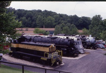 Our train was double-headed due to wet conditions from the previous night's rain and a third helper was used. The trip was two miles following the Meramec River along a bluff through virgin Missouri forest. The train was wyed at the end of the line and we returned to the bus, which took us to the National Museum of Transportation to view their extensive collection of railroad equipment.