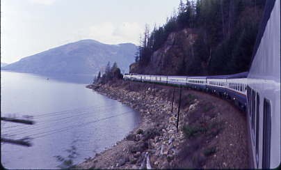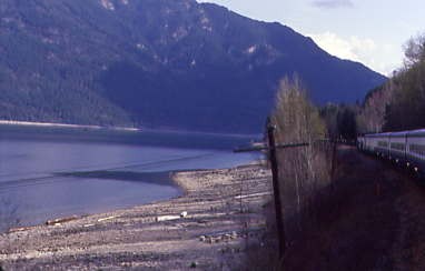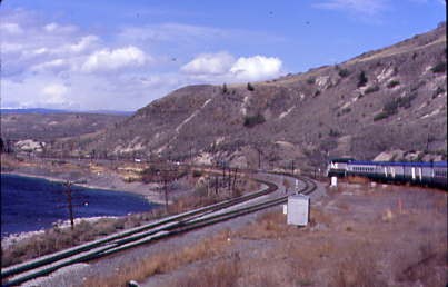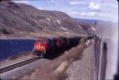 The Canadian National ran along the north shore and Canadian Pacific ran along the south shore of Kamloops Lake.