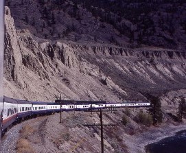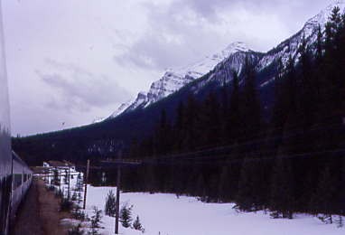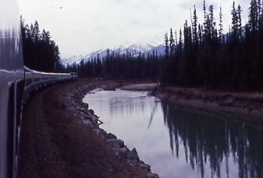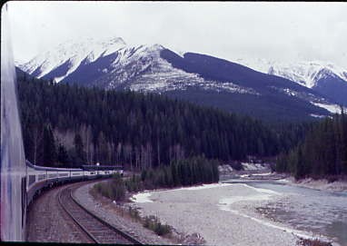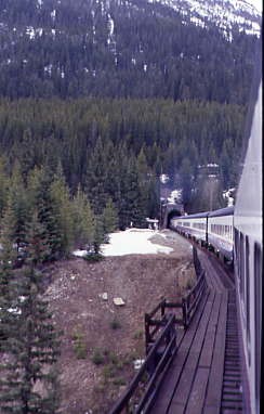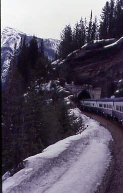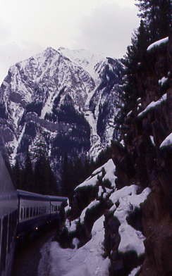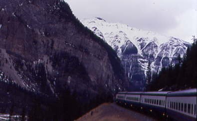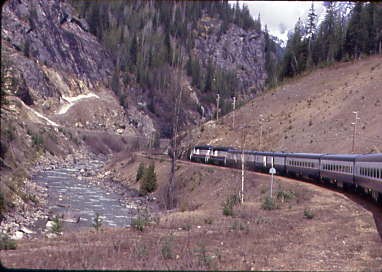 Well, I may not be on the Canadian riding by this location, but I would take this train any day of the year. We entered Kicking Horse River Canyon, crossed the river seven times in the narrow confines and passed through five tunnels and rock detector fences along its sheer cliffs.