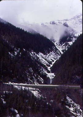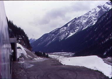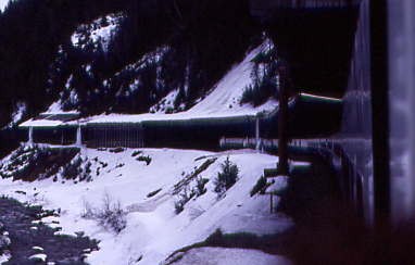 Trans Canada Highway 1 passing through a snowshed. We ran up through the beautiful Albert Canyon and the line became single track at Illecillewaet as we passed through the Laurie Tunnels and snowsheds.